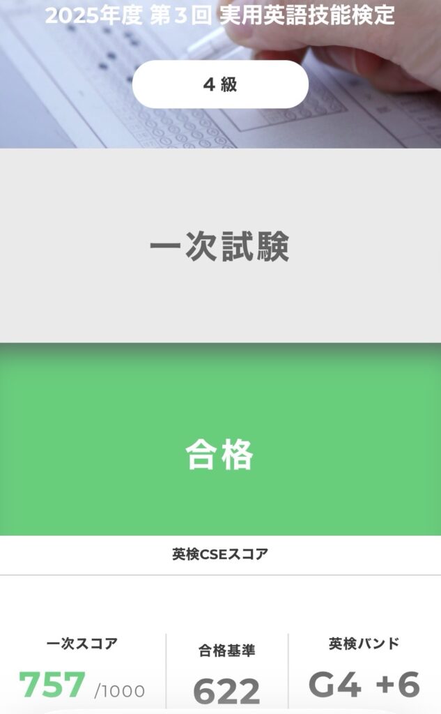 今日はお兄ちゃんが先月25日に受験した英検4級の合格発表の日でした。